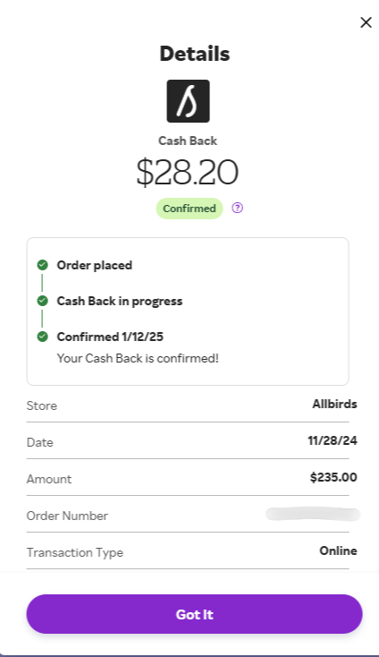 Real Example: $28.20 Back on an Allbirds Order