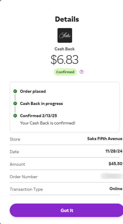 The cashback was confirmed a few weeks later. That’s nearly 12% back, plus credit card rewards on top — for a purchase I was already going to make.
